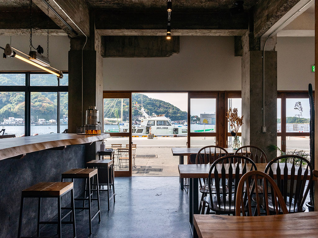 まちの魅力を発掘し情報発信に取り組んでいるホステル。目の前に広がる戸田湾と海越しの富士山の絶景を楽しむことができ、施設の2階にはスウェーデンのアーティスト Merete Lassenによって制作されたアートワークが飾られている。